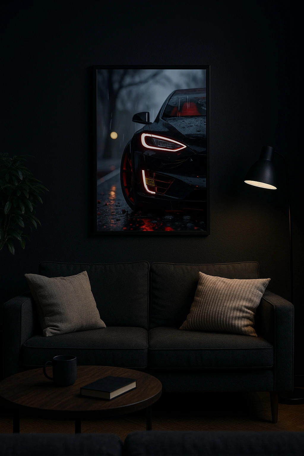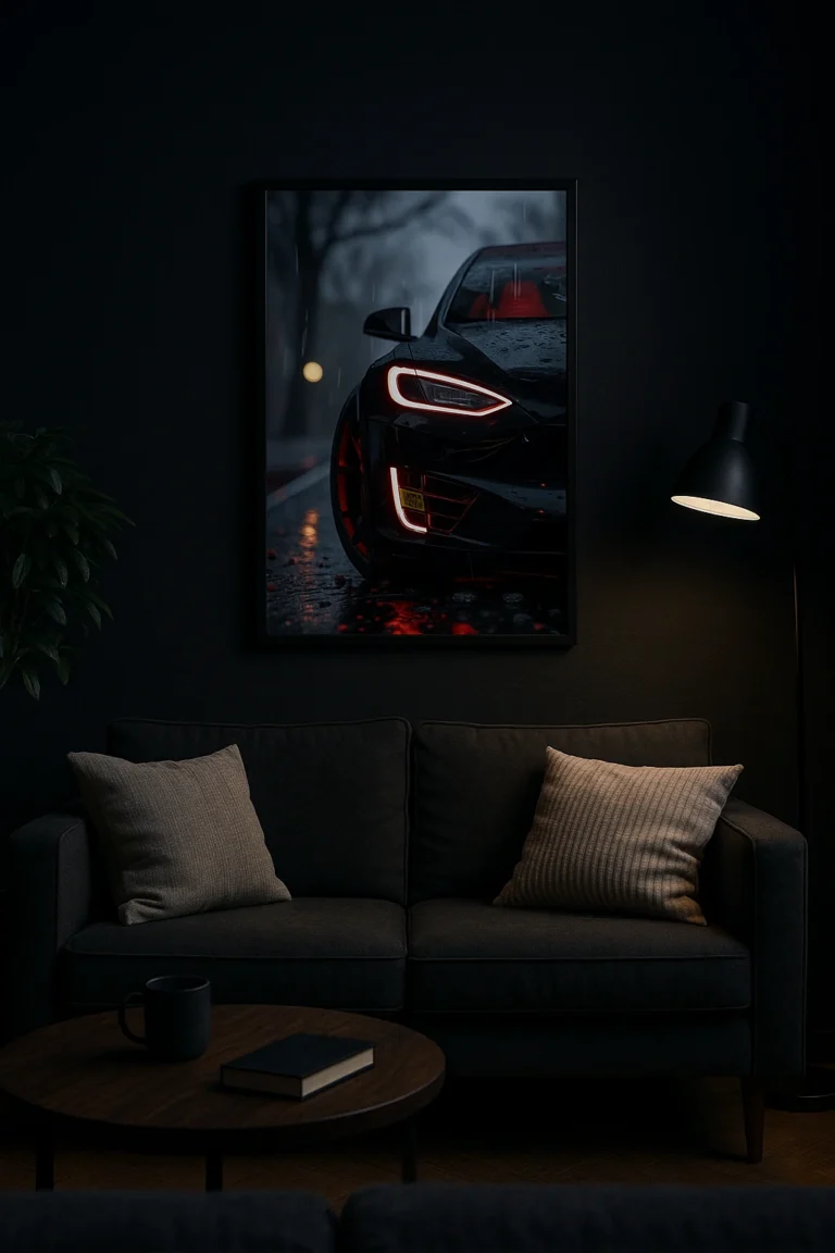 Add a cinematic vibe to your walls with the Black Car Neon Poster featuring glowing red lights and rain effect. Perfect for bedrooms, lounges, cafés, and gaming setups in Pakistan. Premium quality with fast delivery from Neon Ghar.