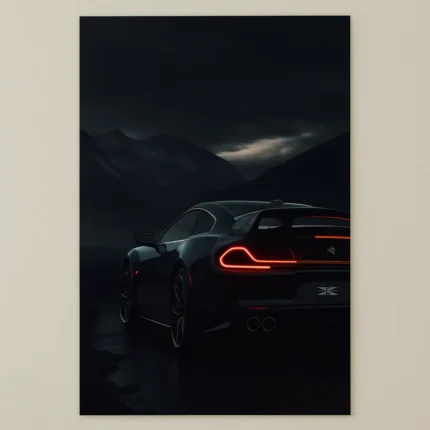 Black Muscle Car Neon Poster with Red Glow CR-016