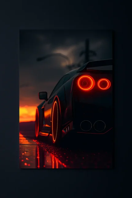 Nissan GT-R Neon Poster with Red Glow CR-011